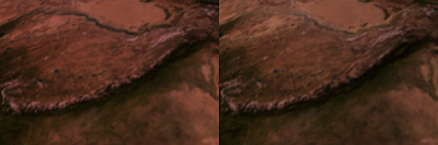 Even though the lighting buffer is quarter-sized, you don't really lose any normal detail since SH accumulates the lighting from all directions. In my test scene, the earth models are the only ones with normal maps (deferred on the left, SH on the right)